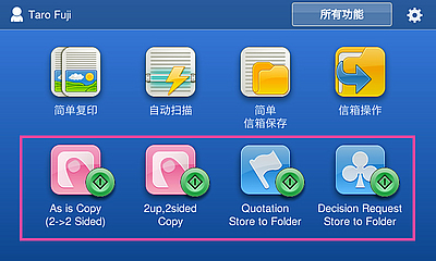 通过安装免费的选配应用程序EasyUI Solution 2可简化操作屏幕并实现更简易的导航。它为个人用户提供了简单且易于使用的操作屏幕,从而减少了工作时间。